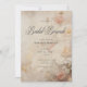 This vintage elegant bridal shower brunch invitation features a antique background of a Victorian vintage design with white and pink roses on an aged ivory background. Classic and yet unique. Created by Simply Farmhouse Press.