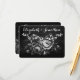 Beautiful and fancy wedding accommodations card featuring pretty vintage Victorian era roses and ribbons on a whimsical chalkboard background. Customize it with your own text.