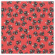 A bold red fabric with a repeating pattern of black and white vintage video cameras, this fabric design suits all sorts of projects from clothing to accessories.