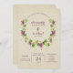 These stylish invitations feature a trendy watercolor wreath decorated with purple grapes, green leaves, and vines. The background has a vintage look made to look like rustic antique paper. The best of vintage and modern style combine for an elegant look perfect for any winery wedding. We have used art from LABFcreations.