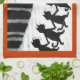 The illustration on this cute kitchen towel showing silhouettes of cats dancing under the moon is by famous English feline artist Louis Wain (1860-1919). Called Black Cat Moon, it was originally published in black and white around 1919. I've added a dash of colour to the magical scene by colouring the face of the man in the moon yellow and painting his lips in red. Below him, the little black cats hold hands as they dance in a snowy forest, staring up at him. He's winking down at them with a conspiratorial smile. I hope you agree there's something magical about this print. The tea towel would make the ideal gift for cat owners and lovers of vintage cat art. You can change the colour border to suit with the customize button.
