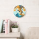 Vintage wave pattern, blue and brown. large clock