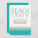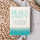 Kick off summer with a beachside bash! Our summery beach party invitations feature distressed vintage ocean waves illustrations in cool shades of teal, turquoise and mint, with "beach party" in matching teal handwritten style typography. Add your party details using the template fields provided. Perfect for beach birthday parties and summer holiday celebrations!