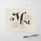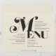 These vintage style 11" x 8.5" wedding dinner paper sheet menus black lettering with a stylized "Menu," in large black letters on a cream background. The menu has placeholders for 2 appetizers, 2 entrees, and 2 desserts and the wedding couple initials.