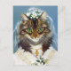 This beautiful vintage cat card is based on a British postcard design by the artist GL Barnes dating from around the early 1900's. The illustration is of a young female cat dressed in a very grand wedding gown complete with floating white veil. Her head dress has little yellow and white flowers and she wears an angel necklace. The tabby cat's wedding gown is trimmed with a gilt floral brocade. Our nervous bride with brilliant gren eyes is shown against a blue sky background that has an almost heavenly light. The card would be perfect for lovers of vintage cat art, cat owners and brides to be! Postcards are perfect for framing and are a cheap and chic alternative to more expensive poster prints.