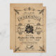 Vintage-style wedding invitation featuring a romantic floral frame, elegant roses, and a carriage on antique distressed paper background. Customizable for your classic or garden themed wedding celebration.