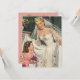 Vintage illustration love and romance image featuring a flower girl with a happy, smiling bride in her beautiful dress with ornate bows on her wedding day. It's time to go get married!