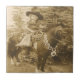 Vintage western photo of my mom in the 1940's dressed in western attire and posing on a pony printed on ceramic tile.