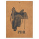 Vintage illustration of western style horse riding saddle on a faux leather background. Personalize with monogram or name/ A design that will be appreciated by those that love the "Cowboy Life".