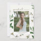 Invite guests to your graduation party with this customizable graduation invitation. It features watercolor white flowers and greenery. Personalize this photo graduation invitation by adding a photo and your details. This botanical graduation invitation is perfect for any event theme.