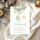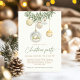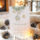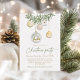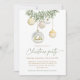 Set the tone for a graceful holiday gathering with this stunning Christmas invitation showcasing gold and white glass ornaments hanging from festive greenery. The elegant script typography pairs beautifully with the soft watercolor details, making it ideal for upscale Christmas parties, cocktail evenings, or winter receptions.