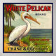 VINTAGE WHITE PELICAN FRUIT PACKING CRATE LABEL POSTER