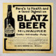 This ad fro Blatz beer appeared in the Albuquerque Evening Citizen in 1907 and has been digitally re-created to bring you this fine print. It measures 12" by 12" and can be enlarged to 24" by 24" and is standard size, ready to frame. It is recommended that you upgrade to heavy duty matte if framing as a print. You can add a frame here or frame it yourself. The Valentin Blatz Brewing Company was an American brewery based in Milwaukee, Wisconsin. It produced Blatz Beer from 1851 until 1959.