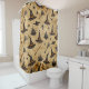 A seamless Halloween pattern shower curtain featuring witch hats, broomsticks, stars, and magical sparks on a rustic parchment background. With its vintage sketch style and sepia-toned aesthetic, this design is perfect for witchy crafts, spooky party décor, digital scrapbooking, or Halloween apparel. Ideal for creating eerie yet charming seasonal projects, this pattern captures the enchanting world of witches and their magical tools.