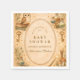 This enchanting baby shower design features a magical vintage storybook scene filled with charming wizard-inspired details. Delicate illustrations of potion bottles, spell books, antique keys, candles, and a wise little owl surround an ornate decorative frame, creating a whimsical atmosphere perfect for a magical celebration. The warm parchment background and soft watercolor textures give the design a nostalgic fairy-tale aesthetic inspired by classic fantasy illustrations. Ideal for wizard-themed baby showers, magical woodland celebrations, or whimsical fantasy gatherings welcoming a little wizard on the way.