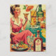 Vintage Woman Drinks Cocktails Illustration Postcard