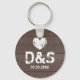 Vintage dark brown wood grain wedding party favour keychain with date of marriage.