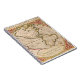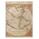 This notebook features a vintage world map in shades of tan, rust and green.