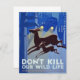 Vintage poster art- Against a night blue background, a deer and her doe are running across the road against a backdrop of headlights from a speeding antique car. It reads Don't Kill Our Wild Life and was used by the National Park Service. Known as the Federal Art Project, it was a visual arts program as a part of the New Deal program started by FDR during the Depression and under the Work Projects Administration. Many beautiful works of art were produced by this federal program.