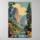 Gaze straight into the heart of Yosemite Valley where the crystal clear turquoise Merced River winds through ancient boulders and towering pines, with the legendary El Capitan rising dramatically against a warm golden sky in this breathtaking vintage style illustration. Rich jewel tones of deep teal, warm sandy granite, and bursts of autumn red and gold foliage give this design a vivid, painterly quality that leaps off the wall with timeless national park grandeur. A stunning statement piece for any cabin, lodge, living room, or adventure-themed space, and a dream present for hikers, climbers, California lovers, and national park collectors who want Yosemite's wild beauty on their walls every single day. NOTE: Changing the default size might require additional resizing of the image, contact us for assistance prior to placing an order. Design is Copyright of Soar In Style Designs LLC.