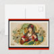 Pretty vintage postcard with a young woman, possibly a gypsy, playing the guitar. The wonderful colours are teal and aqua blue, rose red, peach, gold, lilac, black and cream. The beautiful figure is surrounded with lovely floral decoration. This image is dated 1870-1890 and was featured on a tobacco label. The original image resides with The New York Public Library Digital Collections. The image here has been enhanced and framed.