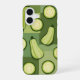 Retro pattern composed of large zucchini slices arranged on geometric blocks.