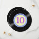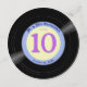 A retro 1970s vinyl record style round paper Table Number for your wedding with shades of cream, periwinkle blue, and purple. This fun custom design features a vinyl record image. The label displays your table number. The label border features your names and wedding date in a retro script. Very vinyl and very 70s groovy.
