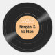 Un autocollant rond style vinyle rétro couleur classique personnalisé avec votre monogramme et vos noms. Cet autocollant ajoute un joli détail supplémentaire sous forme de sceau d'enveloppe ou peut être utilisé comme touche décorative personnalisée sur un emballage de faveur ou d'autres articles de papeterie mariage ou de composants de réception. Améliorez le thème vinyle classique de votre célébration, quel que soit votre DJ : country, disco, hip hop, métal, rock and roll, ou standards, Étiquette et texte couleurs peuvent être customisés dans l'outil de conception. La couleur de l'enregistrement est noire. Partie de la collection Hello Pink Feathers Vinyl for Music Lovers.