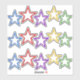 Stars in various sizes and colours (blue, red, purple, yellow and green). 3 individual stickers are easily separated to group stars as you like, three of each colour.