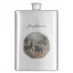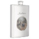 The product is a good size and came exactly as it was pictured. The lid is not attached to the flask, which could be dangerous on drunken nights... The print came out surprisingly well and looks very sharp. Would definitely recommend.