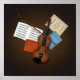 This poster shows a scene in which a viola and bow lie on top of a pile of music books that can be customized with the names of your favourite composers and the titles of your favourite musical pieces, suites, etc.