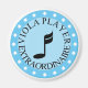 This fun viola music design has big blue circle with Viola Player Extraordinaire slogan surrounded by stars.