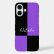 Add a bold flourish to your phone with this colour block phone case, featuring black and violet rectangles in a minimalist, modern design. Personalize with your name in script typography for the finishing touch. An ideal gift for lovers of colourful and trendy tech accessories.