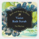 A bath and body care label featuring a background of violets. Can be personalized with your text and logo.