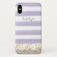 Cet élégant motif rayé couleur rose pâle et blanc dessiné à la main Coque-Mate à peine Il iPhone X Coque a des confettis en or sur le fond et un modèle de nom personnalisable pour vous de personnaliser si vous le souhaitez, ou vous pouvez supprimer le nom si vous le préférez.