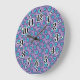 Violet Blue Flowers Pattern Large Clock
