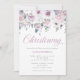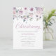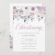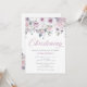 These beautiful Christening invitations feature watercolor blush, soft purple, and white flowers with plenty of botanical leaves and elegant light purple calligraphy.