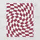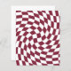 Modern bohemian dark burgundy red colour theme bridal wedding party products. Evergreen retro trendy warped checks design, warped chequered paper plates in beautiful elegant and chic dark burgundy red and white colour.