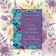 This wedding invitation card comes in different sizes, shapes and papers. It is customizable with your Intro, names and or monograms, occasion, date, address and other than a turqouise background. It shows a harmonious blend of floral colourful watercolor wildflowers and greenery. The minimal transparent frozen violet and lilac overlay is for your customization. Indulge in the regal splendour of a violet-inspired wildflower greenery wedding. Rich purple accents amidst lush greenery set the stage for a grand celebration that exudes opulence and sophistication. Hobinishop