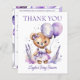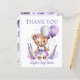 Beary mignonne fille ours en peluche violet ballons lavande baby shower carte de remerciements, aquarelle ours en peluche portant une robe et un arc-en-cheveux avec ballons violet violet ours en peluche filles baby shower carte de remerciements