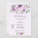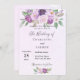 A violet, lavender watercolored background. Decorated with violet and purple watercolored flowers and greenery. Personalize and add your names and party details.