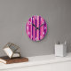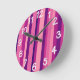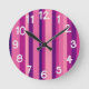 This wall clock has a design of vertical stripes of six shades of violet.