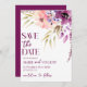 Violet Magenta Floral Flower Wedding Save The Date Invitation