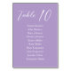 Violet Minimalist Script Wedding Seating Plan Table Number
