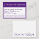 Gardez vos amis et votre famille à jour avec votre nouvelle adresse à l'aide de ces cartes d'enceinte simples à double bordure. J'ai utilisé les en-têtes "CHANGEMENT D'ADRESSE" et "RESTER EN TOUCHE", un de chaque côté. Utilisez les champs modèle pour ajouter tous vos propres détails afin de customiser ce design pour votre usage personnel. Toutes les couleurs, polices et mises en forme peuvent être ajustées selon vos préférences.