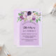 A violet, lavender watercolored background and an arch frame. Decorated with violet and purple watercolored flowers and greenery. Personalize and add your name and party details.
