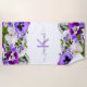 Two elegant borders of violet, lavender coloured, purple and white flowers, pansies on an elegant white background. Personalize and add your name and monogram letter, initial. Purple coloured letters. The name is written with a modern hand lettered style script with swashes. To keep the swashes only delete the sample name, leave the spaces or emoji's in front and after the name.