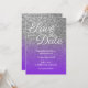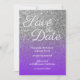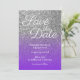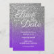 Bright violet gradient and silvery glam glitter gradient wedding save the date.