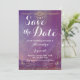 This Save the Date features a unique mix of elements to set the tone for a handfasting ceremony taking place beneath the night sky, moon, and stars.