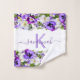 Deux bordures élégantes de violet, de couleur lavande, de fleurs violettes et blanches, des panneaux sur un élégant arrière - plan blanc. Personnalisez et ajoutez votre nom et la lettre monogramme, initiale. Lettres violettes. Le nom est écrit avec un script de style moderne écrit à la main avec des swashes. Pour que les swashes ne suppriment que le nom de l'échantillon, laissez les espaces ou émoticônes devant et après le nom.